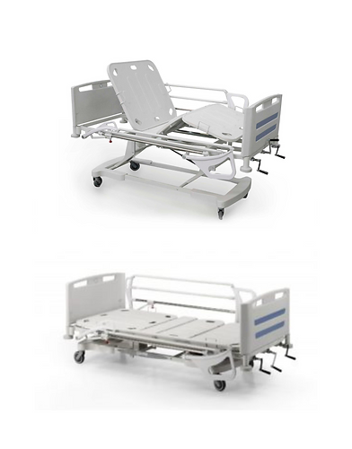 Posee una base carenada en ABS la cual protege la estructura de la base y facilita su limpieza, ruedas Tente de diámetro 125 mm., dos con freno individual y un sistema de elevación en altura mediante manivela asistido por pistón de gas de 1200NW el cual facilita la subida de la cama con pacientes de gran volumen.